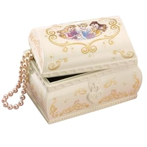 Lenox Princess Jewelry Box. Sleeping Beauty, Cinderella and Belle grace the top of this jewelry box shaped like a treasure chest. On the right side of the box are Mrs. Potts & Chip from Beauty and the Beast, on the back is Cinderella's coach, and Lumiere from "Beauty and the Beast" is a welcome sight on the left side.
